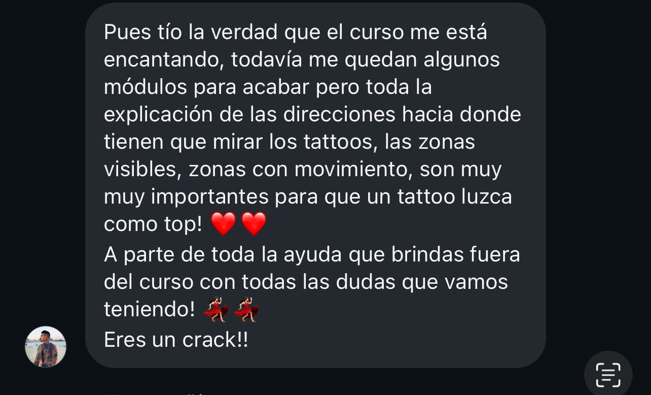 Aunque no necesitas ser un profesional, para sacar lo mejor de este curso debes tener los conocimientos basicos sobre como tatuar.
